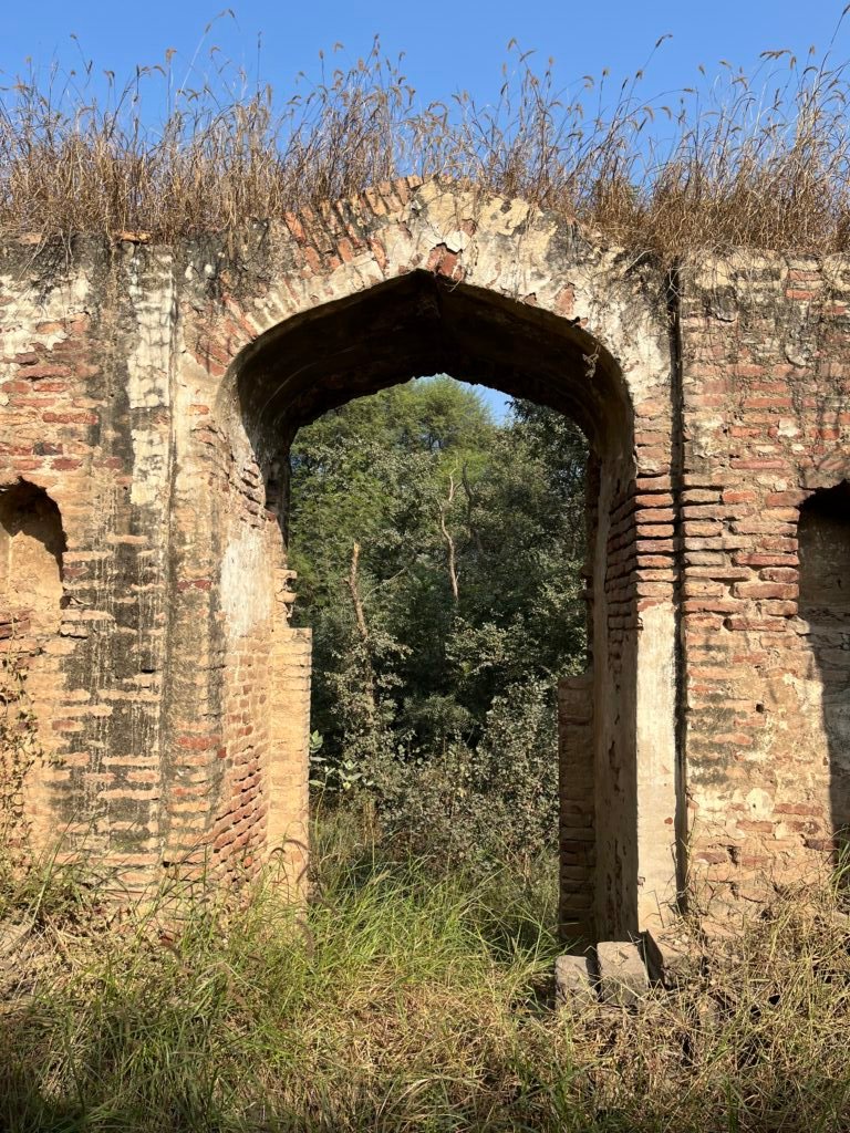 Dense bushes now surround the structure from all sides, obscuring its form and accelerating decay. Yet even in this state, the craftsmanship reflects Mughal sensibilities of symmetry, durability, and practicality.