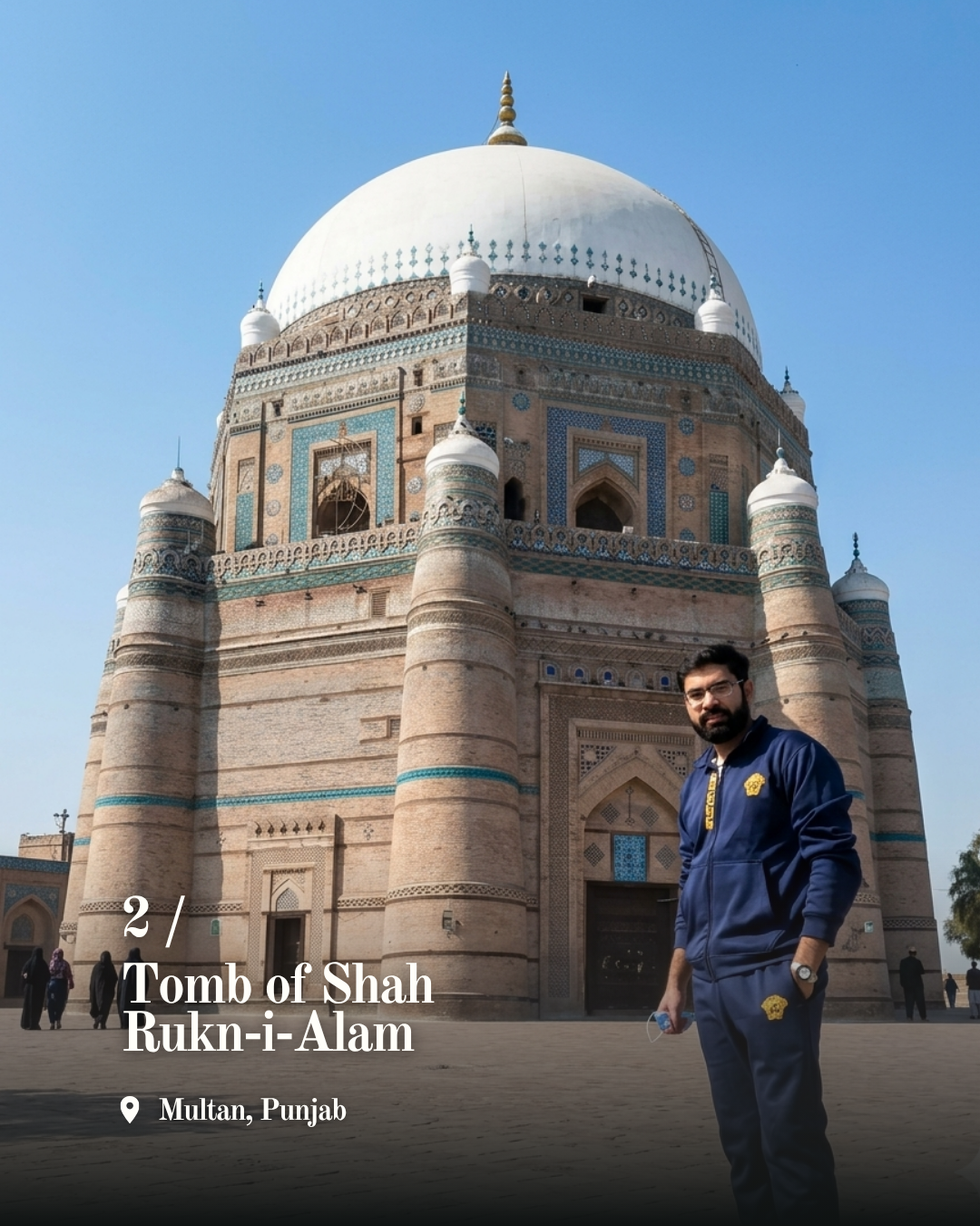 The blue and white tile work, intricate carvings, and geometric harmony transform the structure into both a visual and spiritual masterpiece. Inside lies the resting place of Shah Rukn i Alam, a revered Sufi saint whose influence still shapes the spiritual identity of the region.
