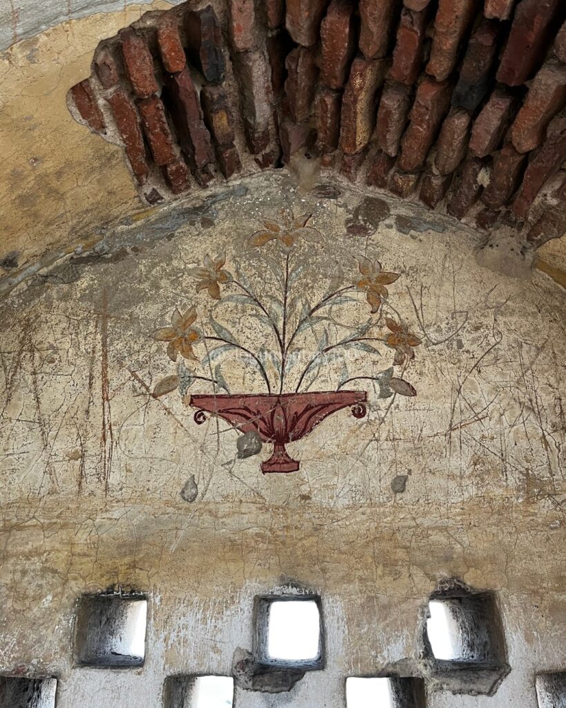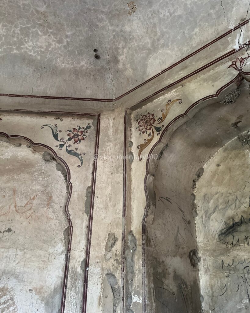 The newly excavated lower room has a single entryway, narrow and mysterious. The second floor offers two arched openings that frame the surrounding landscape. Above them, the Guru Astan opens in four directions, inviting light and air from all sides. The interior speaks in the language of intricate floral motifs, painted ceilings, arches shaped like petals, and delicate patterns that reflect the aesthetic soul of the Sikh era.